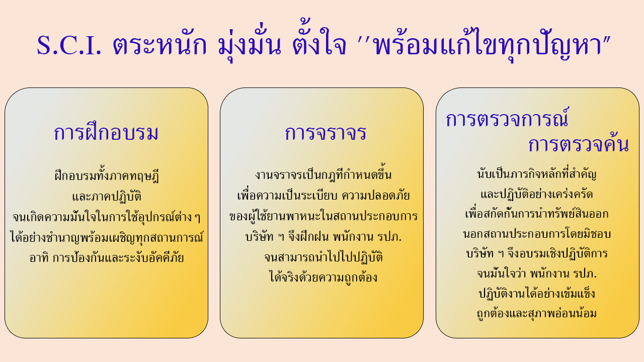 - บริษัท ฯ มีนโยบายจัดฝึกอบรมใหญ่ให้กับพนักงาน รปภ. ในหน่วยงานเดือนละ 1-2 ครั้ง